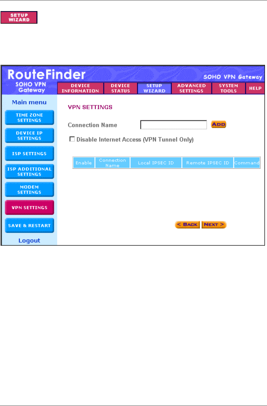 2. Click the Add button, and the VPN Settings detail screen will display (see the next screen). Once