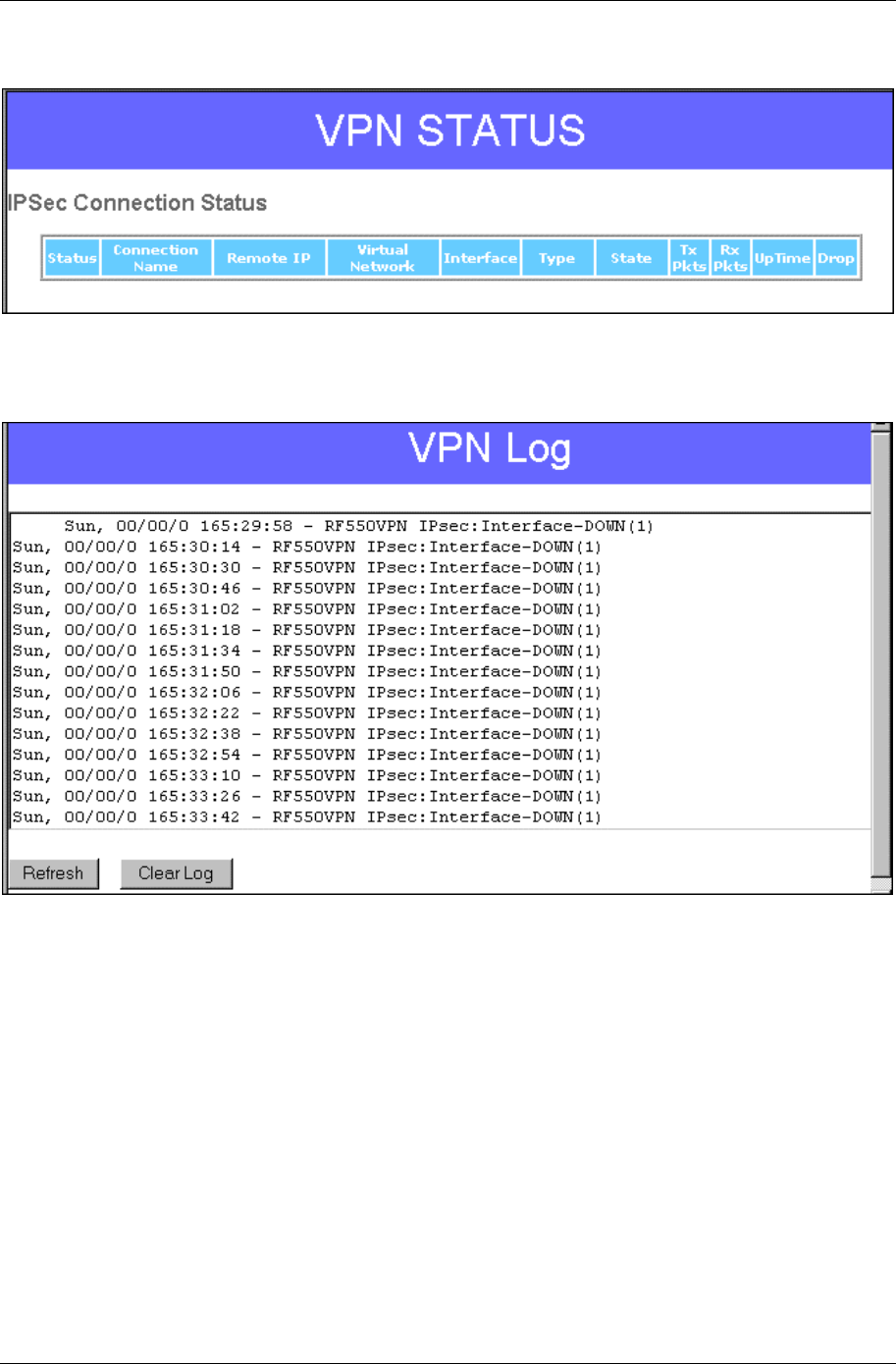 VPN Log – Click this button to view the current VPN activity. You will see a screen similar to this one.