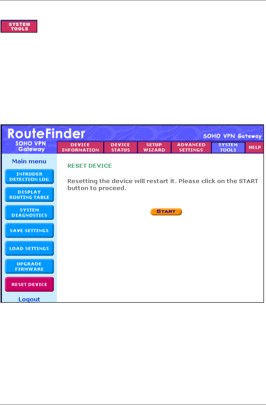 Note: Another way to reset the device is to push the reset button on the back panel of the RouteFinder
