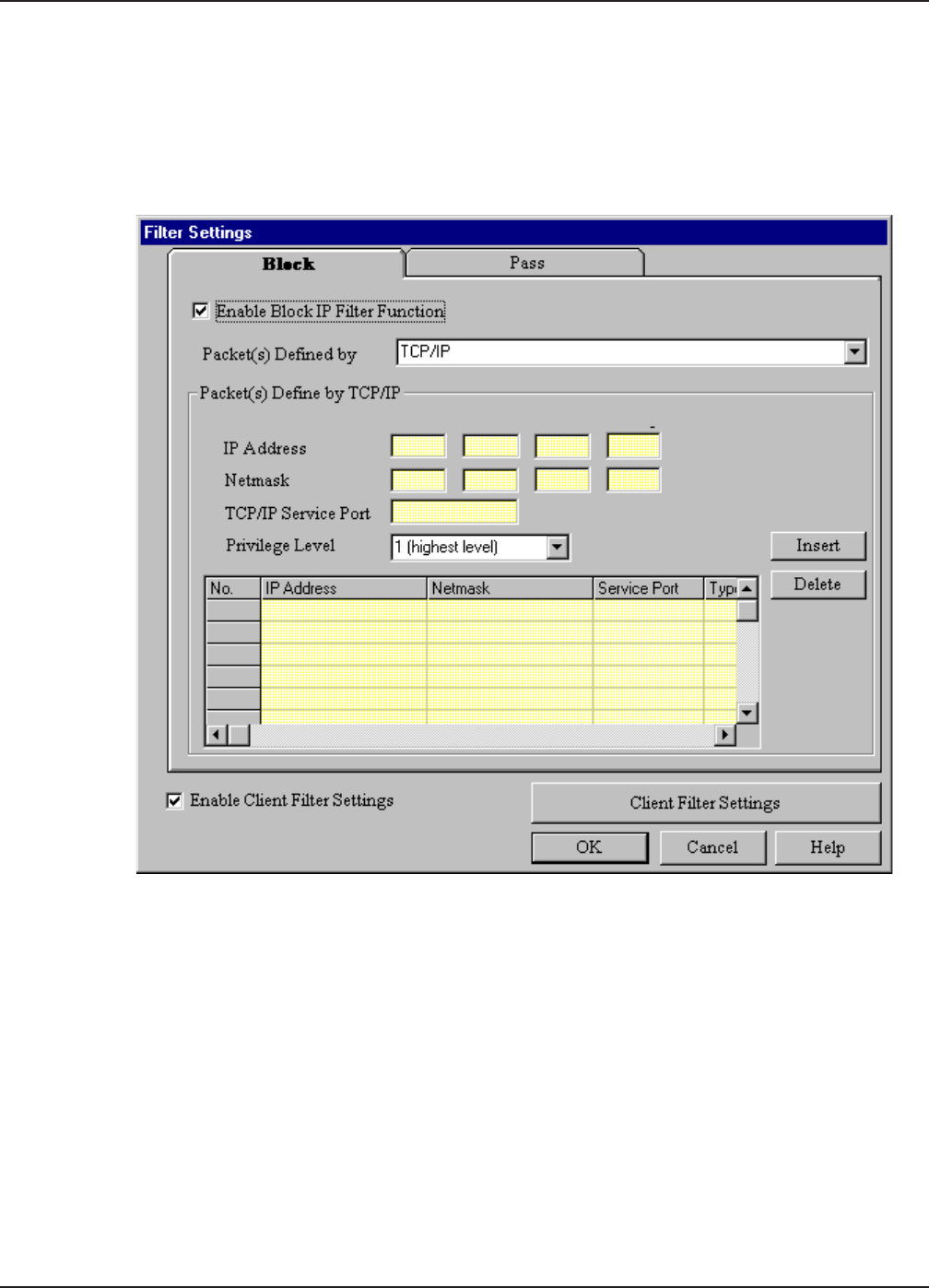 which packets will be blocked. Filter Settings can be used to filter network services such as